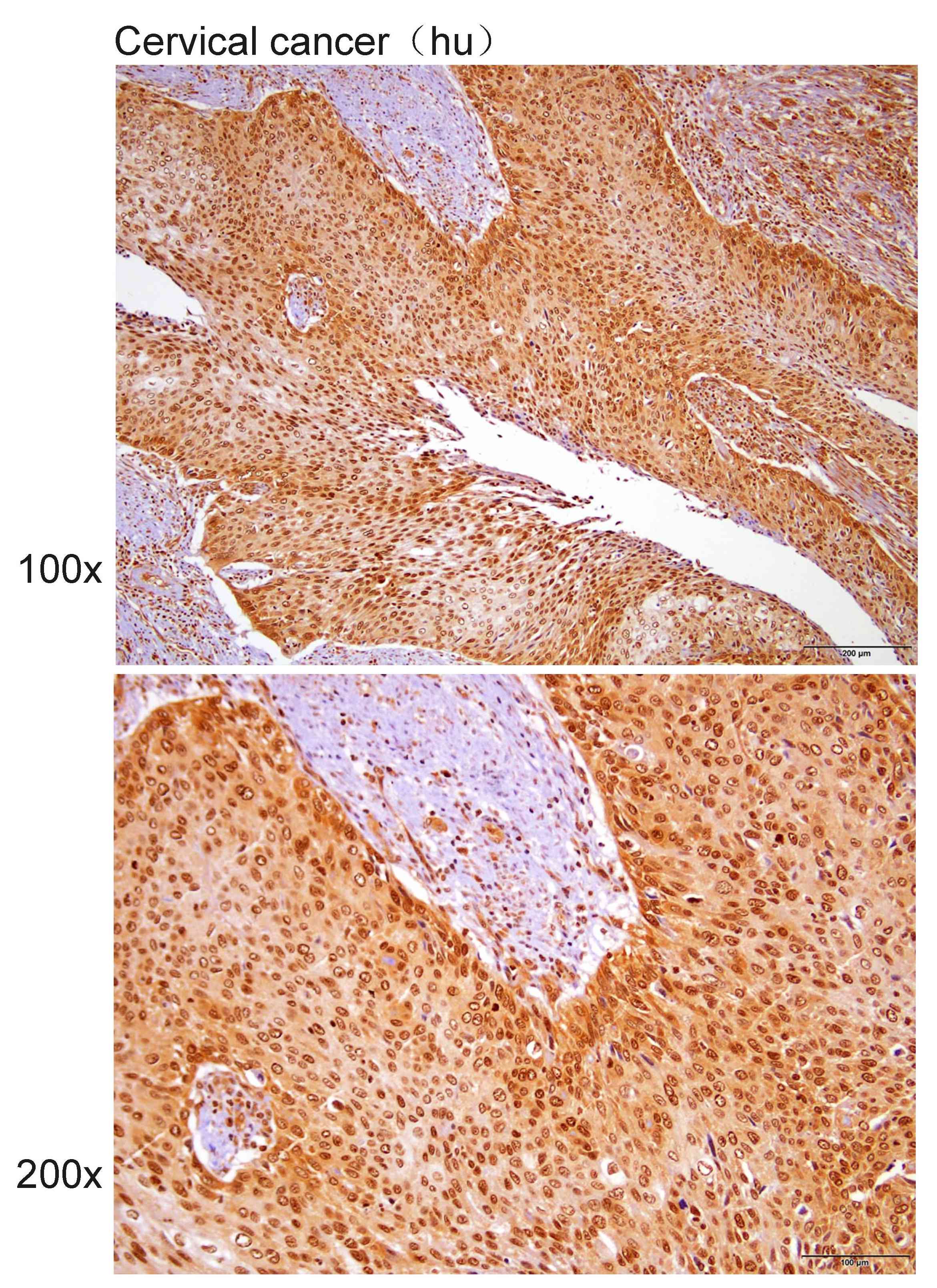 Immunohistochemistry?of?paraffin-embedded?Human Cervical cancer?with?RNF146 antibody diluted at 1:100