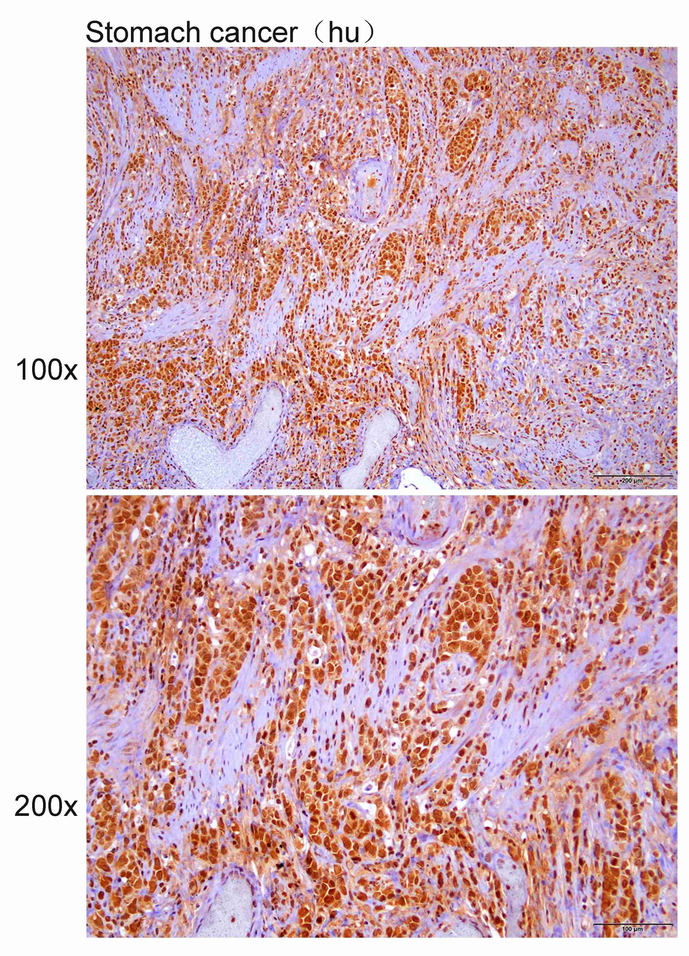 Immunohistochemistry?of?paraffin-embedded?Human Stomach cancer?with?LIN37 antibody diluted at 1:100