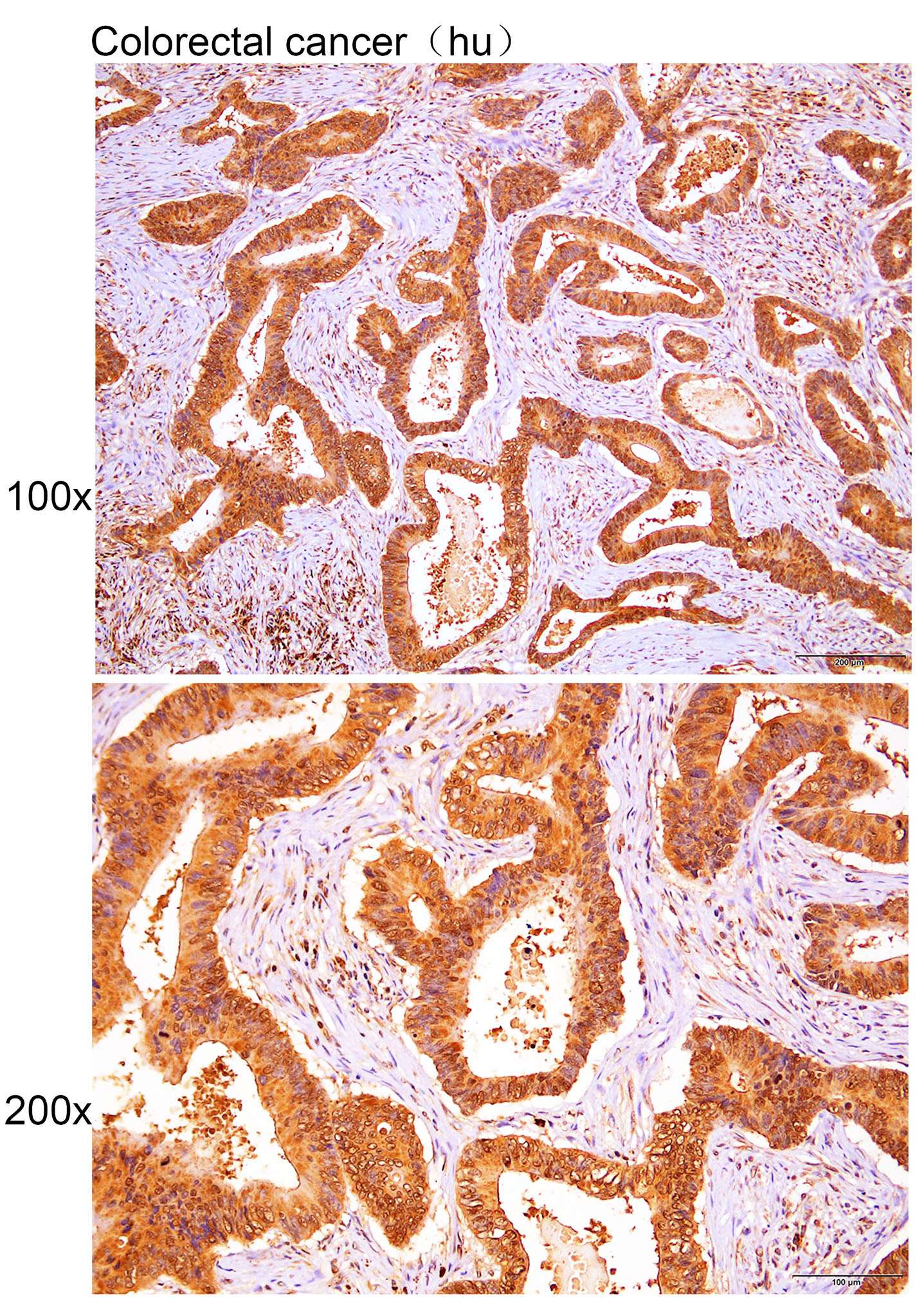 Immunohistochemistry?of?paraffin-embedded?Human colorectal cancer?with?FDCSP antibody diluted at 1:40