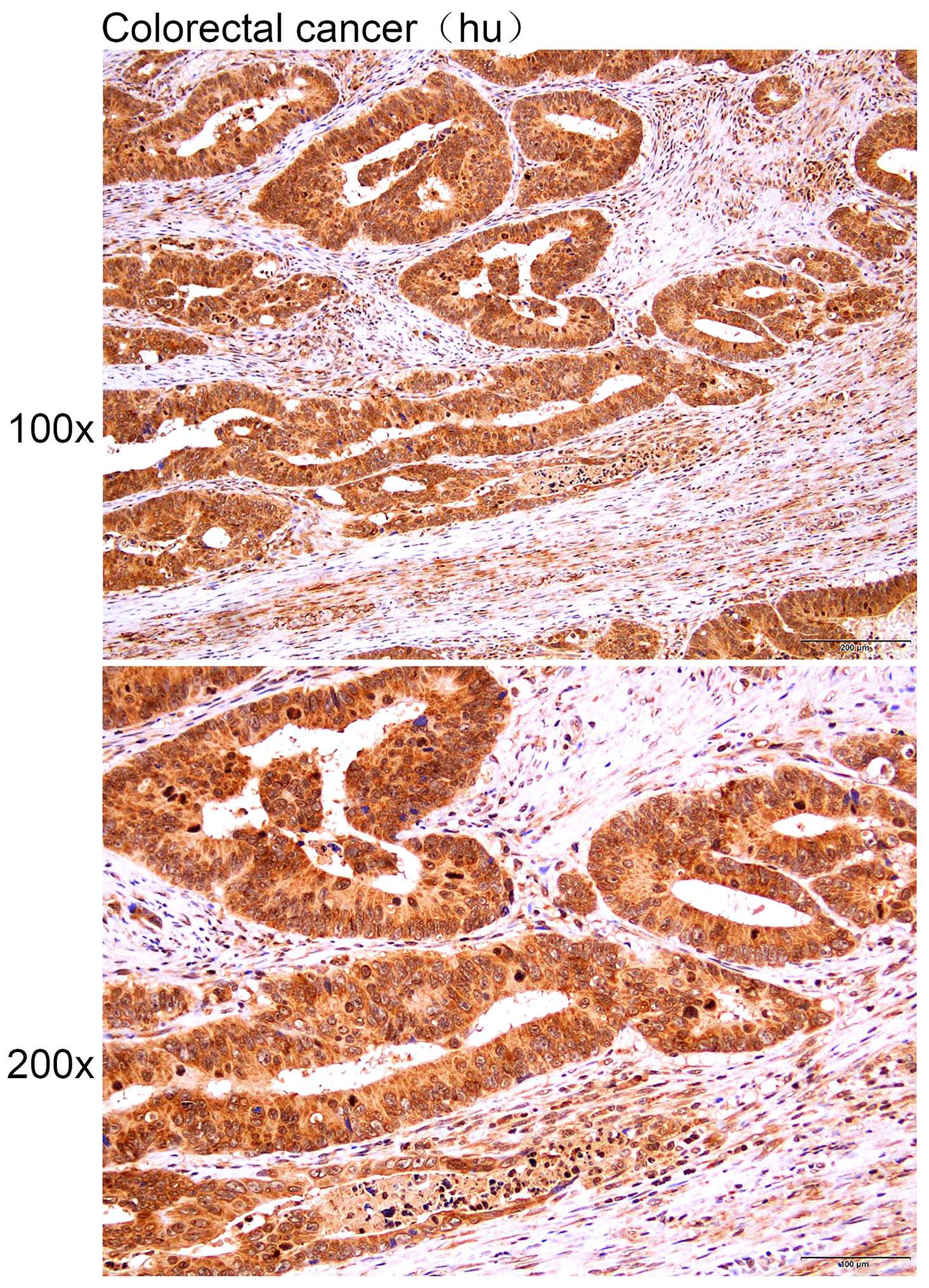 Immunohistochemistry?of?paraffin-embedded?Human colorectal cancer?with?GA45G antibody diluted at 1:100