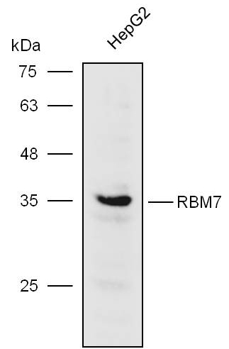 Western blot analysis with RBM7 antibody diluted at 1:6000;Lane:HepG2