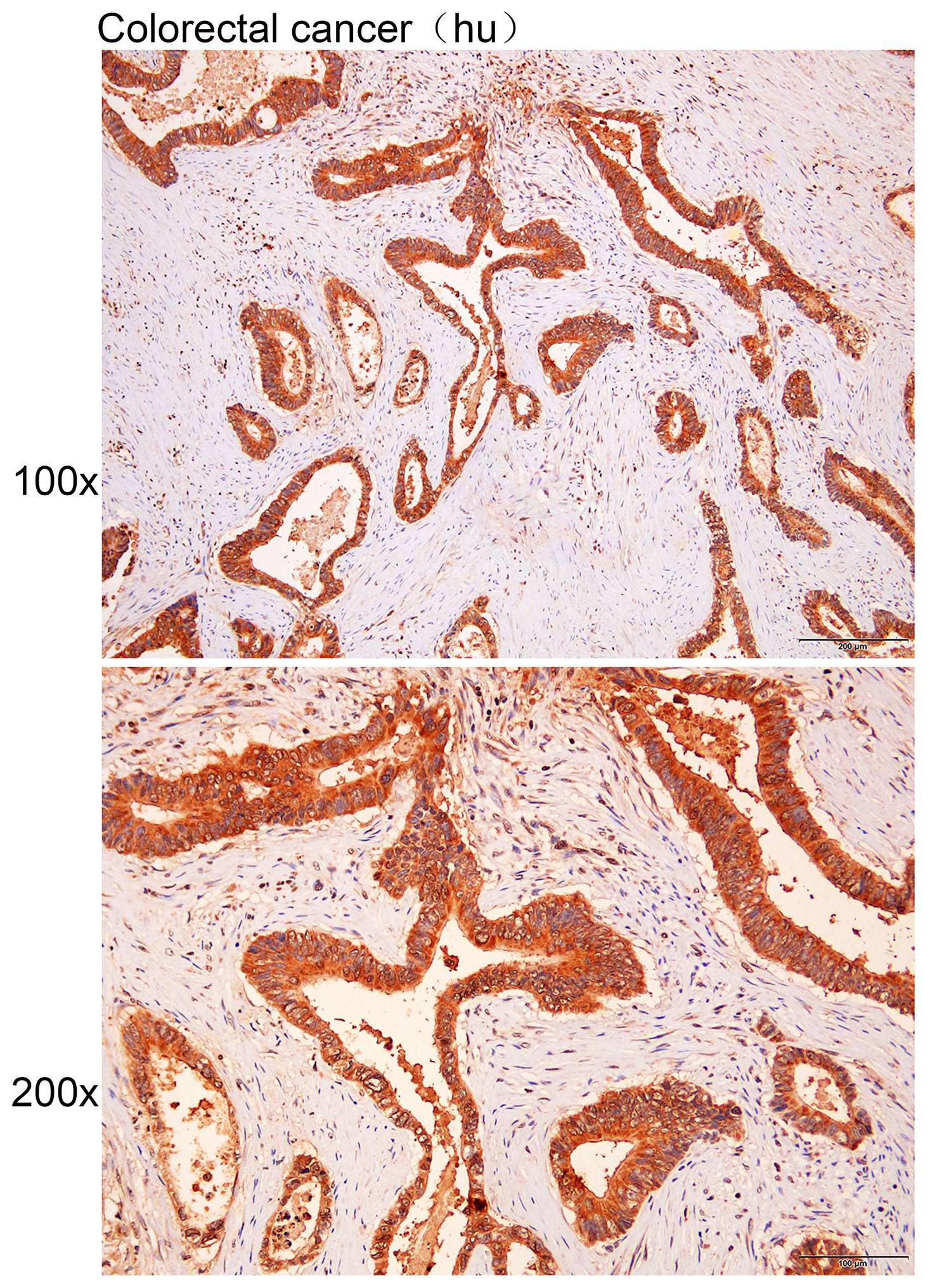 Immunohistochemistry of paraffin-embedded Human colorectal cancer tissue with SPRY2 antibody