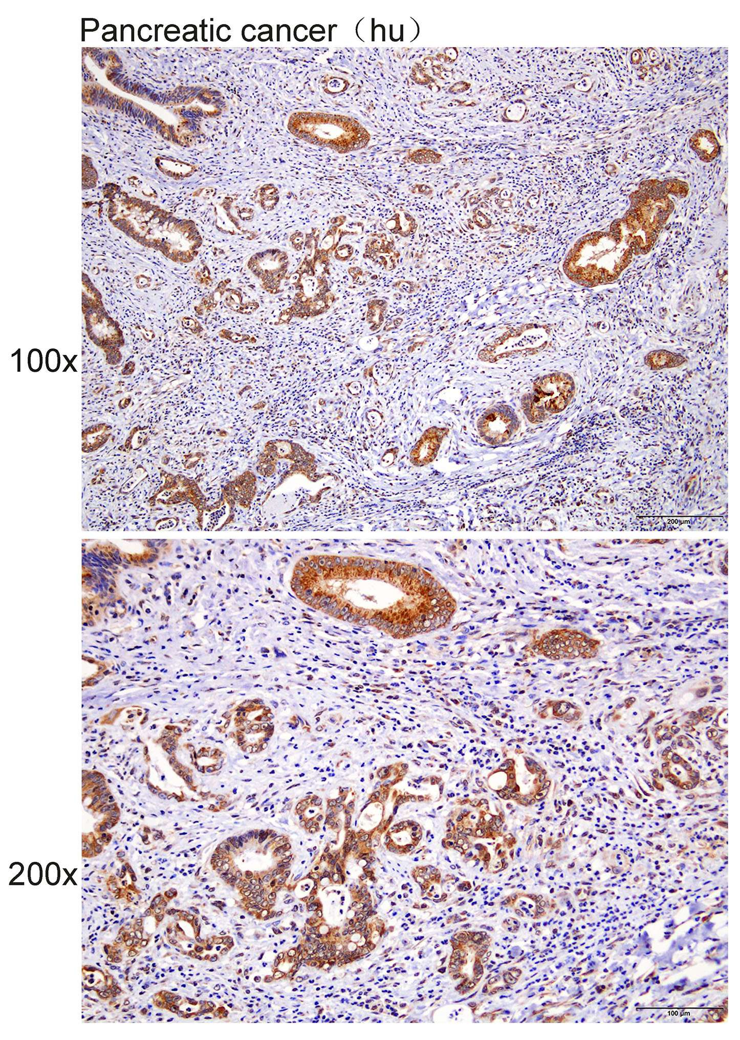 Immunohistochemistry of paraffin-embedded Human pancreatic cancer tissue with HIF3 alpha antibody diluted at 1:100