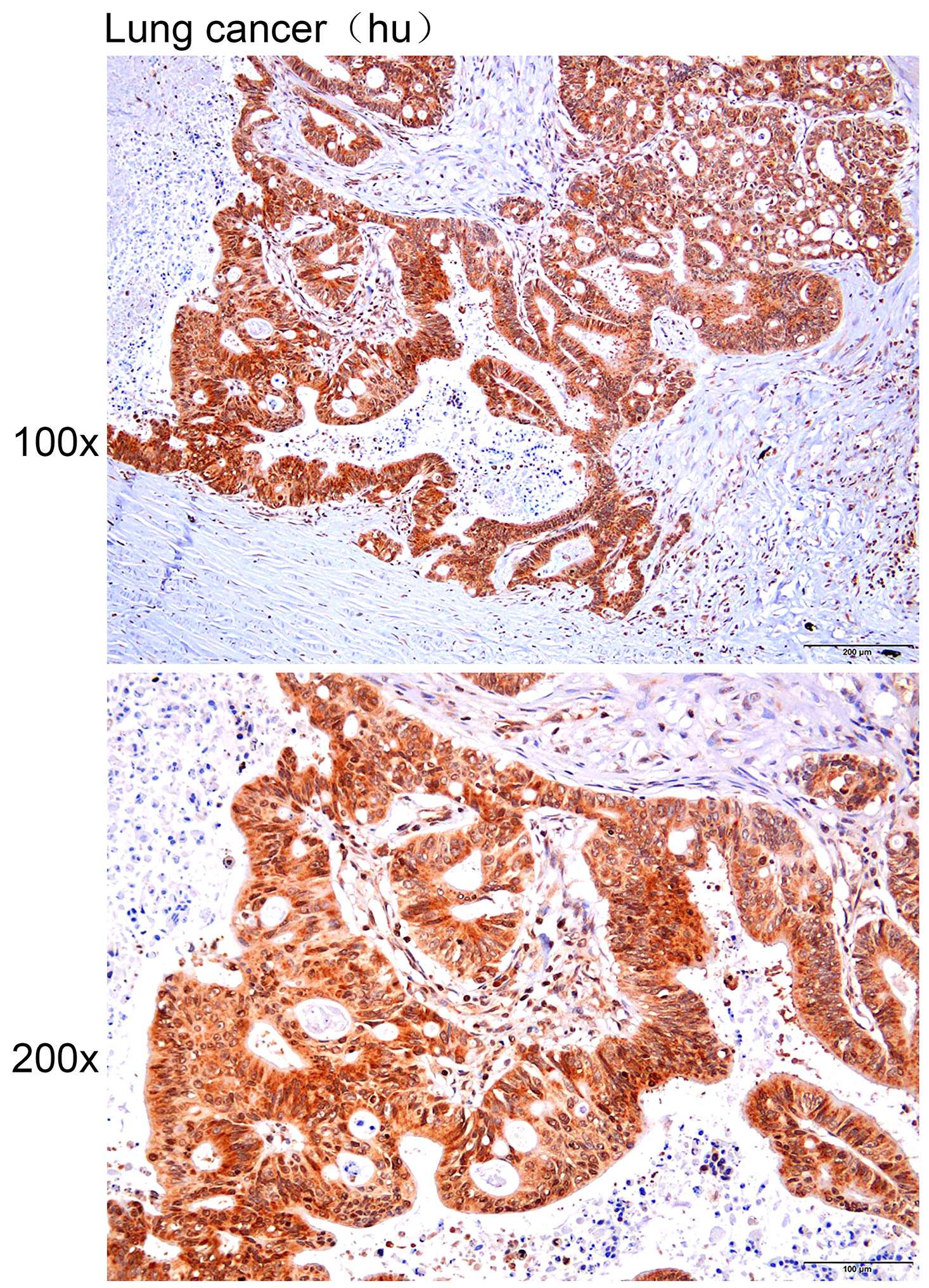 Immunohistochemistry?of?paraffin-embedded Human lung cancer?with?PLEKHA1 antibody diluted at 1:200