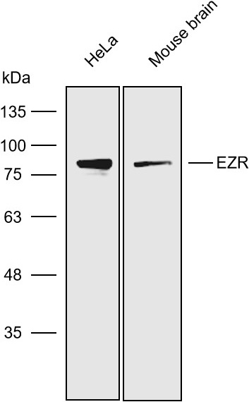 Western blot analysis with EZR antibody diluted at 1:6000;Lane: HeLa,Mouse brain