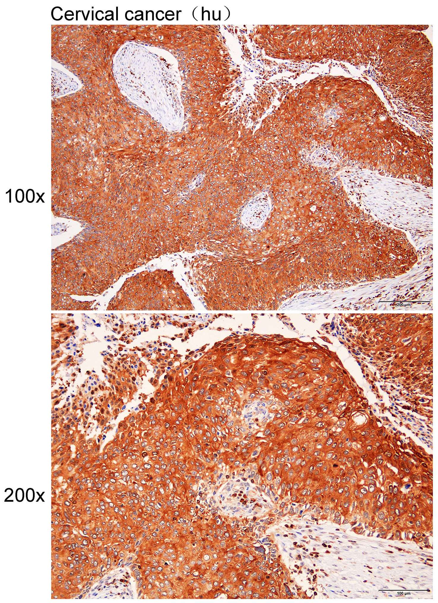 Immunohistochemistry?of?paraffin-embedded Human cervical cancer?with?EZR antibody diluted at 1:200