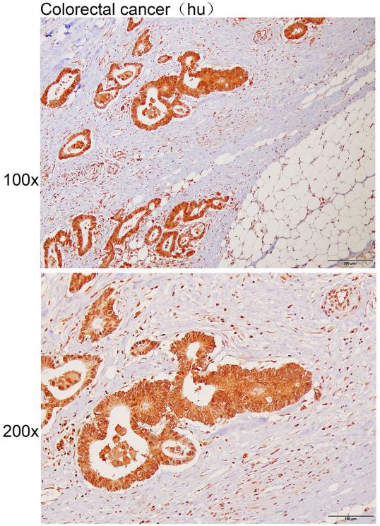 Immunohistochemistry?of?paraffin-embedded Human colorectal cancer with?MVD antibody diluted at 1:200