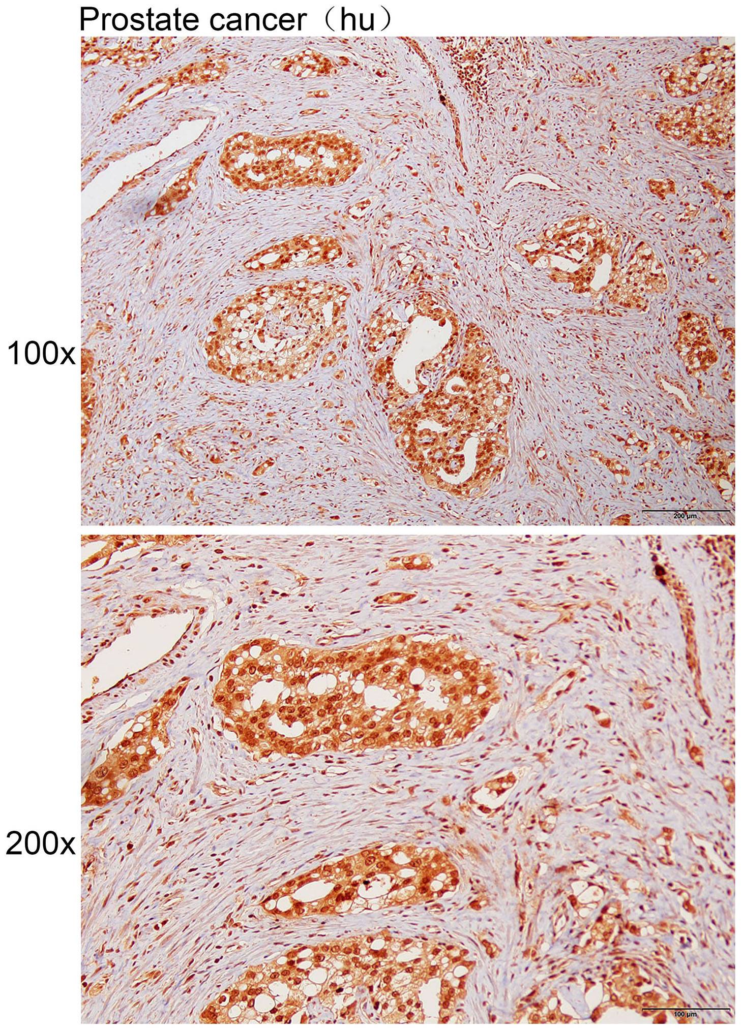 Immunohistochemistry?of?paraffin-embedded Human prostate cancer with?DEK antibody diluted at 1:100