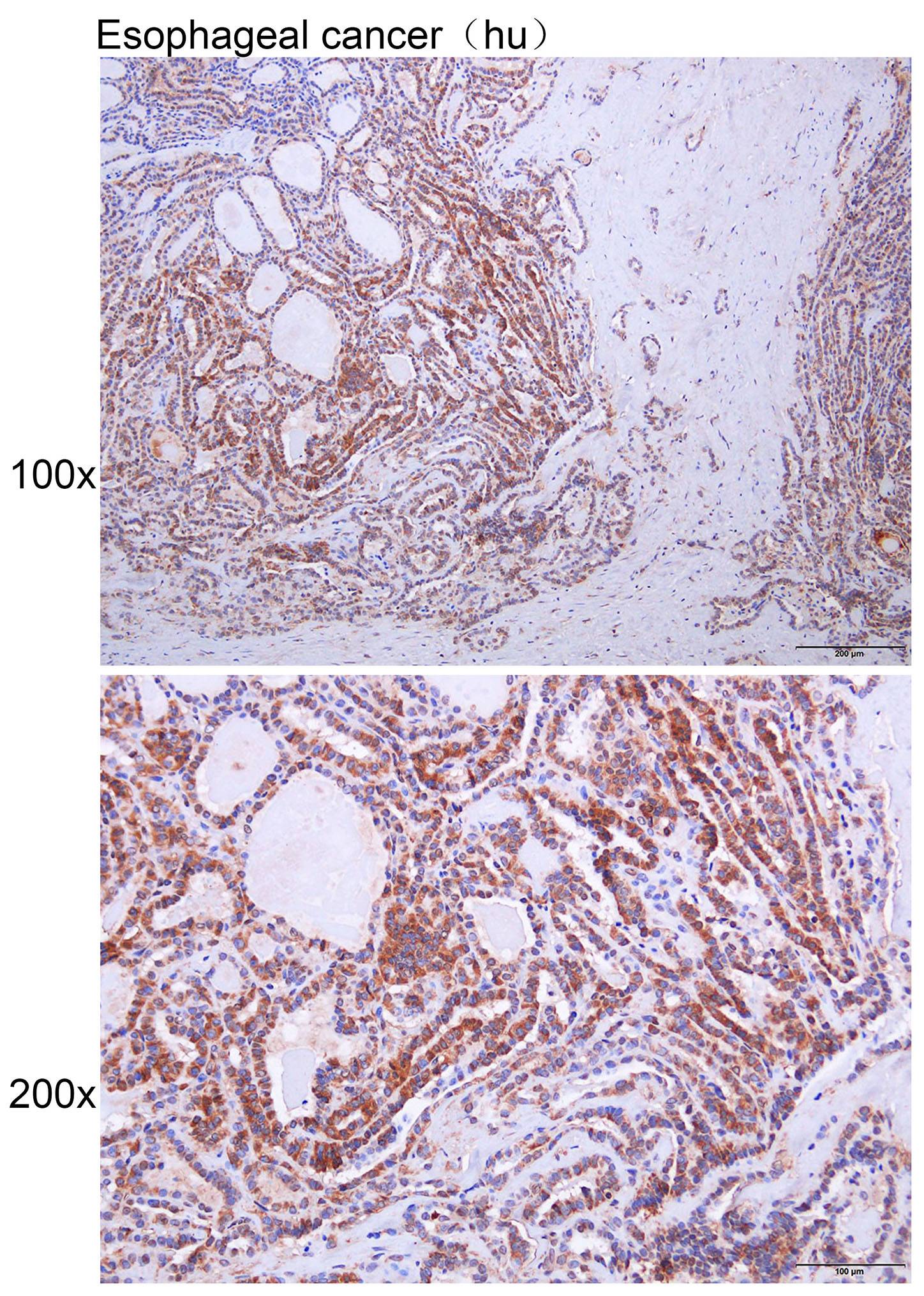 Immunohistochemistry of paraffin-embedded Human thyroid cancer with RAB6C antibody diluted at 1:100