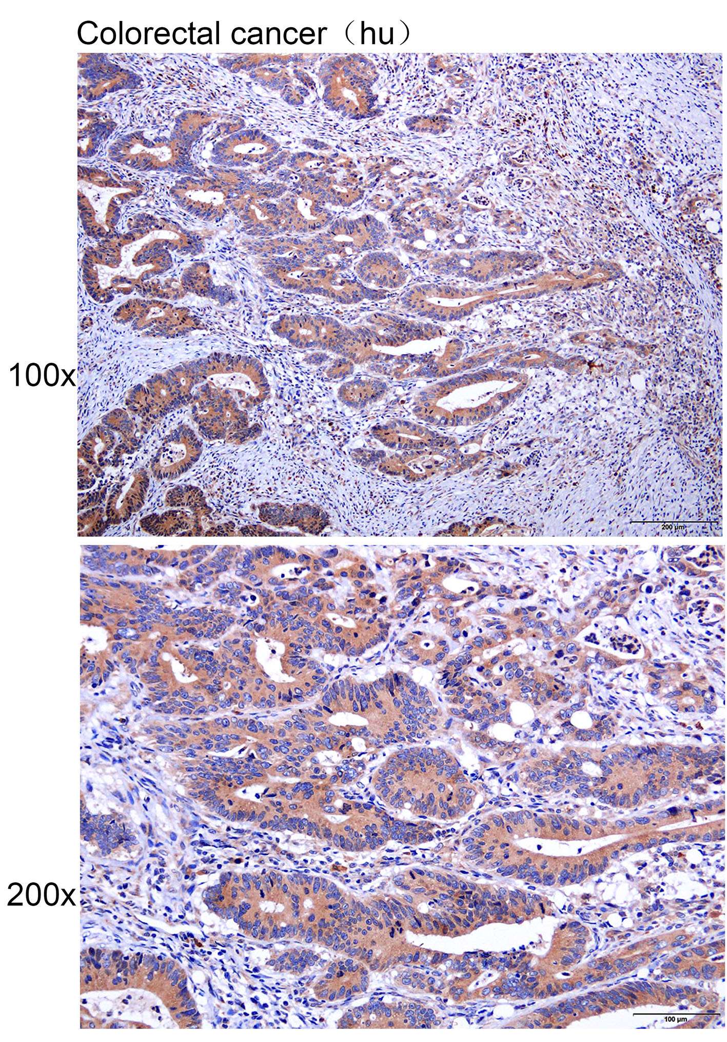 Immunohistochemistry of paraffin-embedded Human colorectal cancer with RAB6C antibody diluted at 1:100