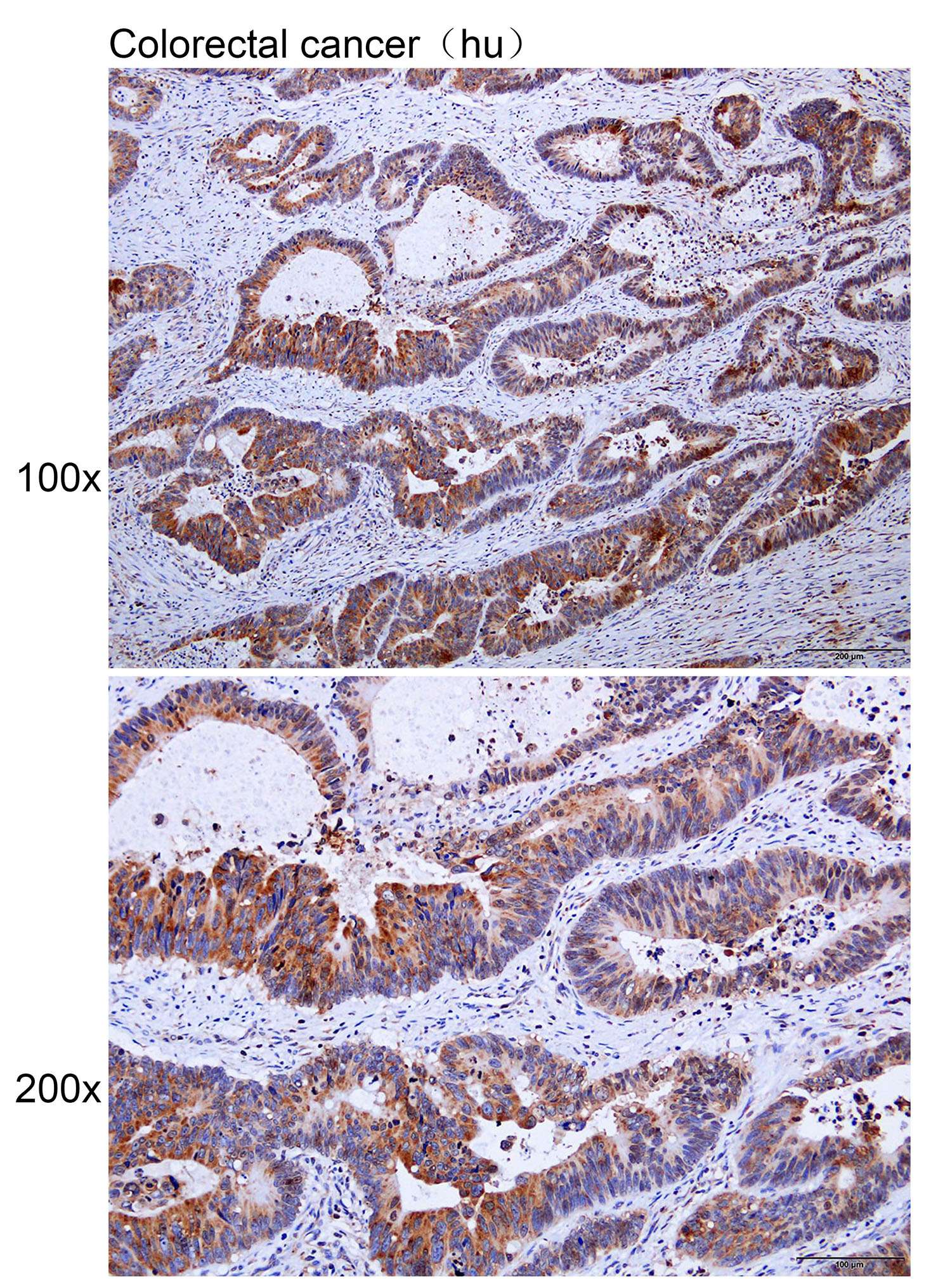 Immunohistochemistry of paraffin-embedded Human colorectal cancer with RPL30 antibody diluted at 1:200