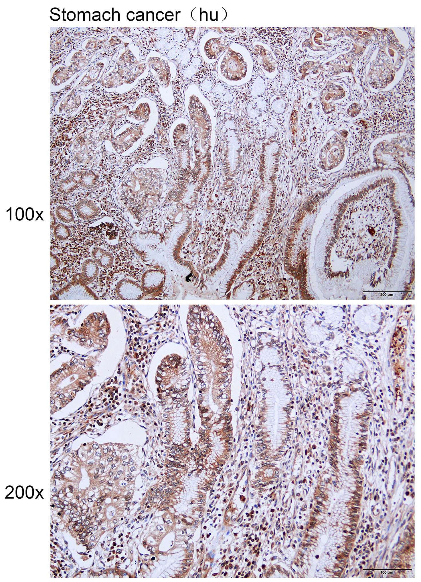 Immunohistochemistry of paraffin-embedded Human stomach cancer with RPL30 antibody diluted at