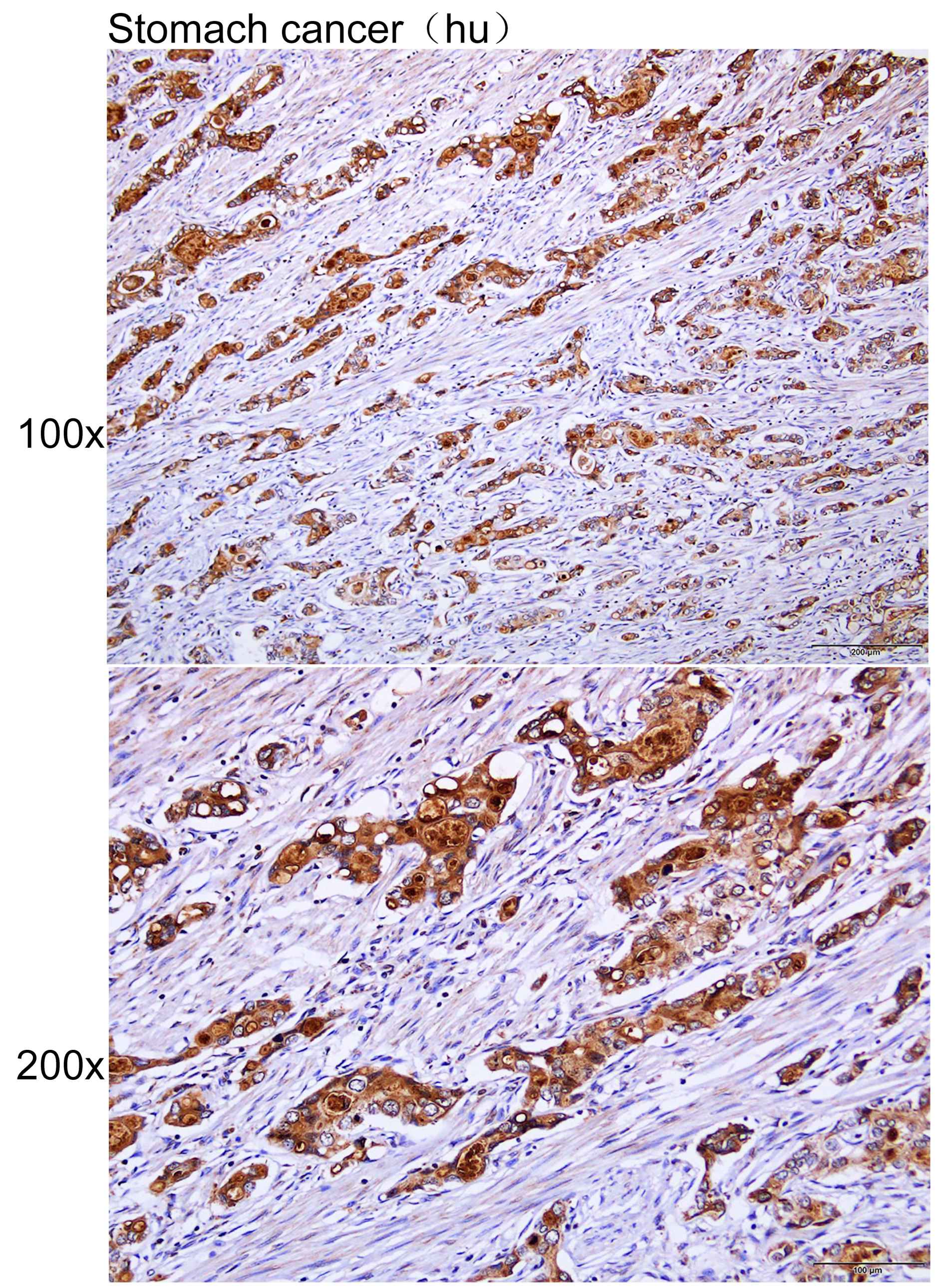 Immunohistochemistry of paraffin-embedded Human stomachl cancer with PARP11 antibody diluted at 1:100