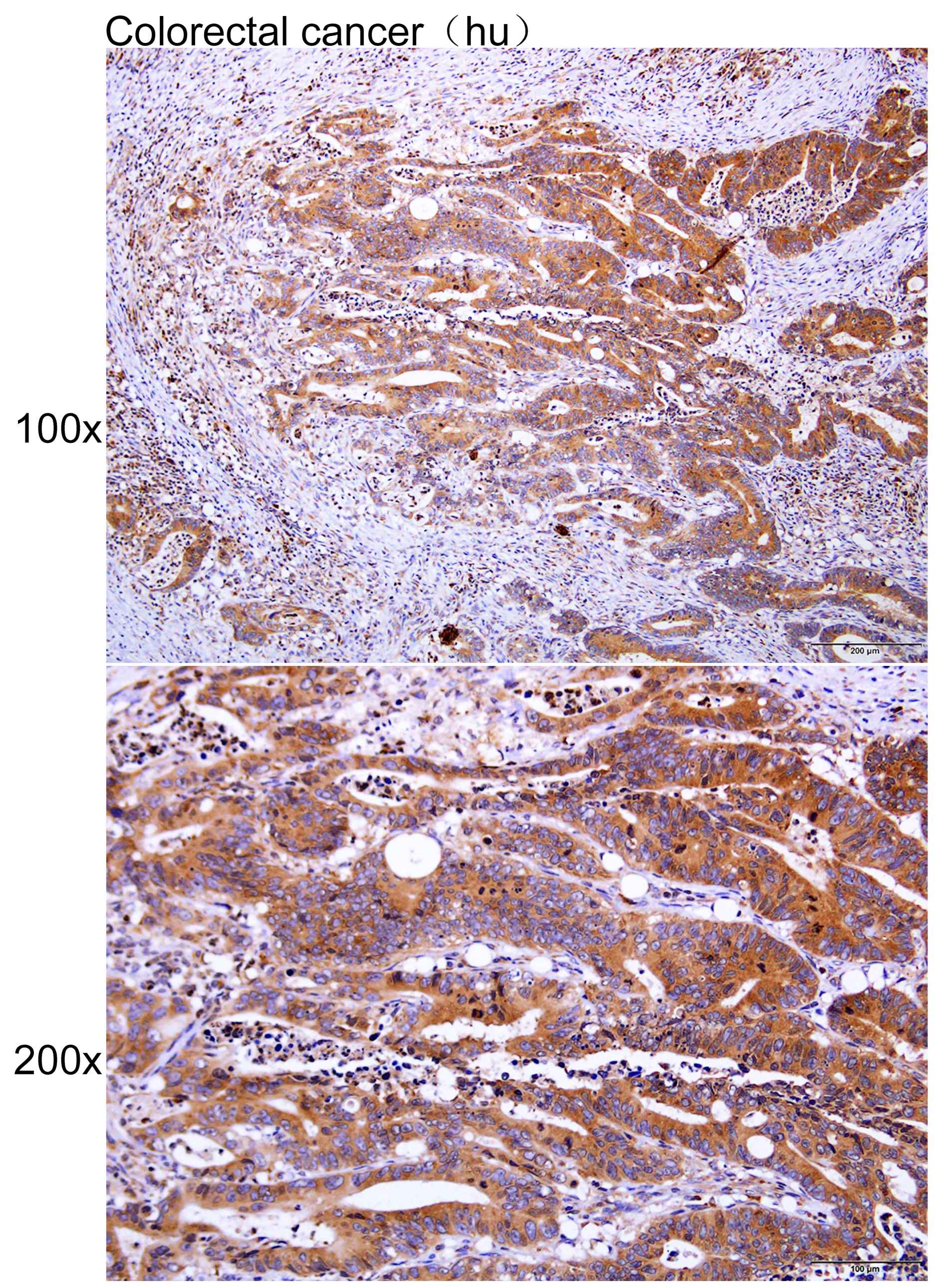 Immunohistochemistry of paraffin-embedded Human colorectal cancer with PARP11 antibody diluted at 1:100