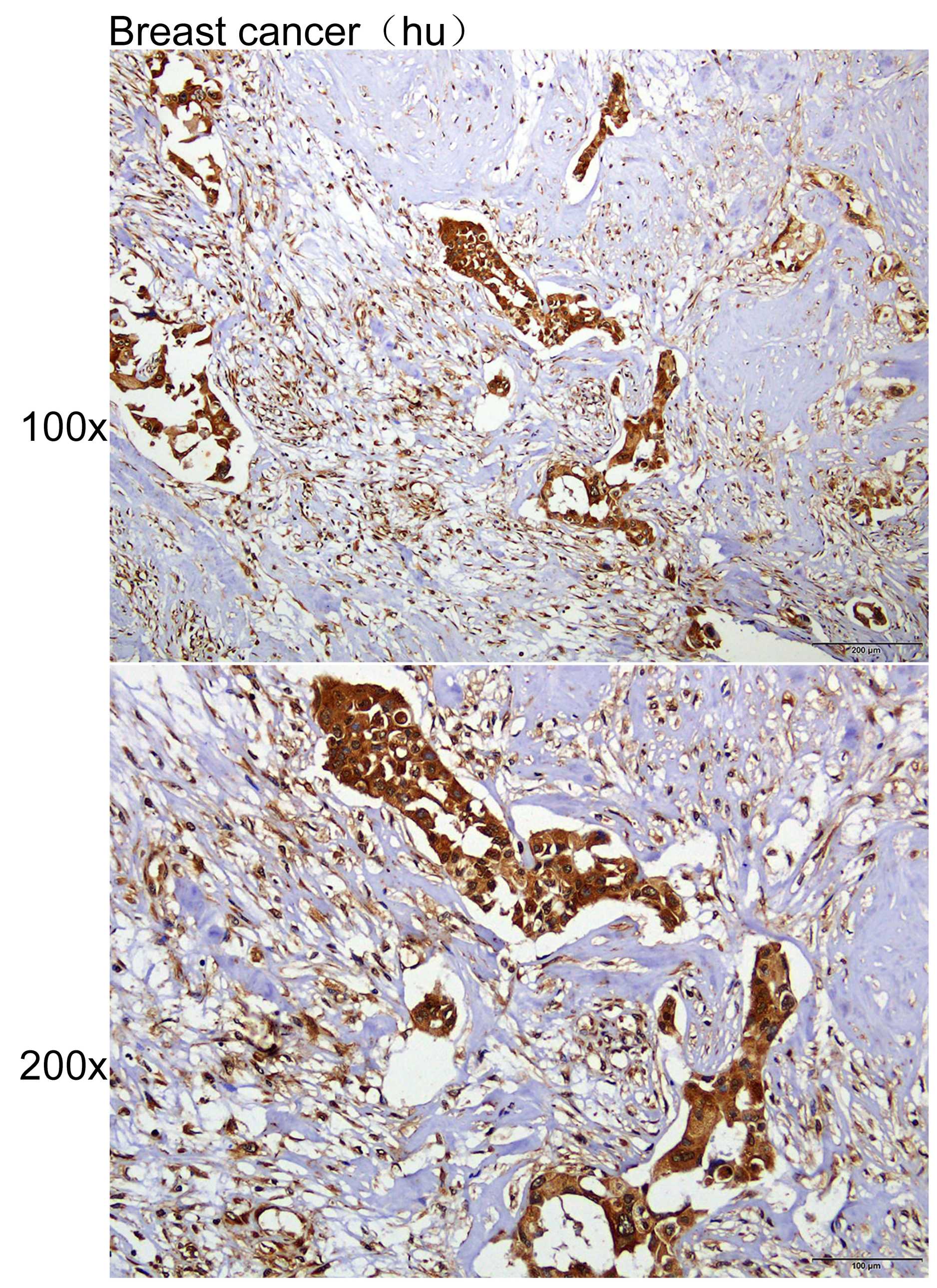 Immunohistochemistry of paraffin-embedded Human breast cancer with HMGCR antibody diluted at 1:100