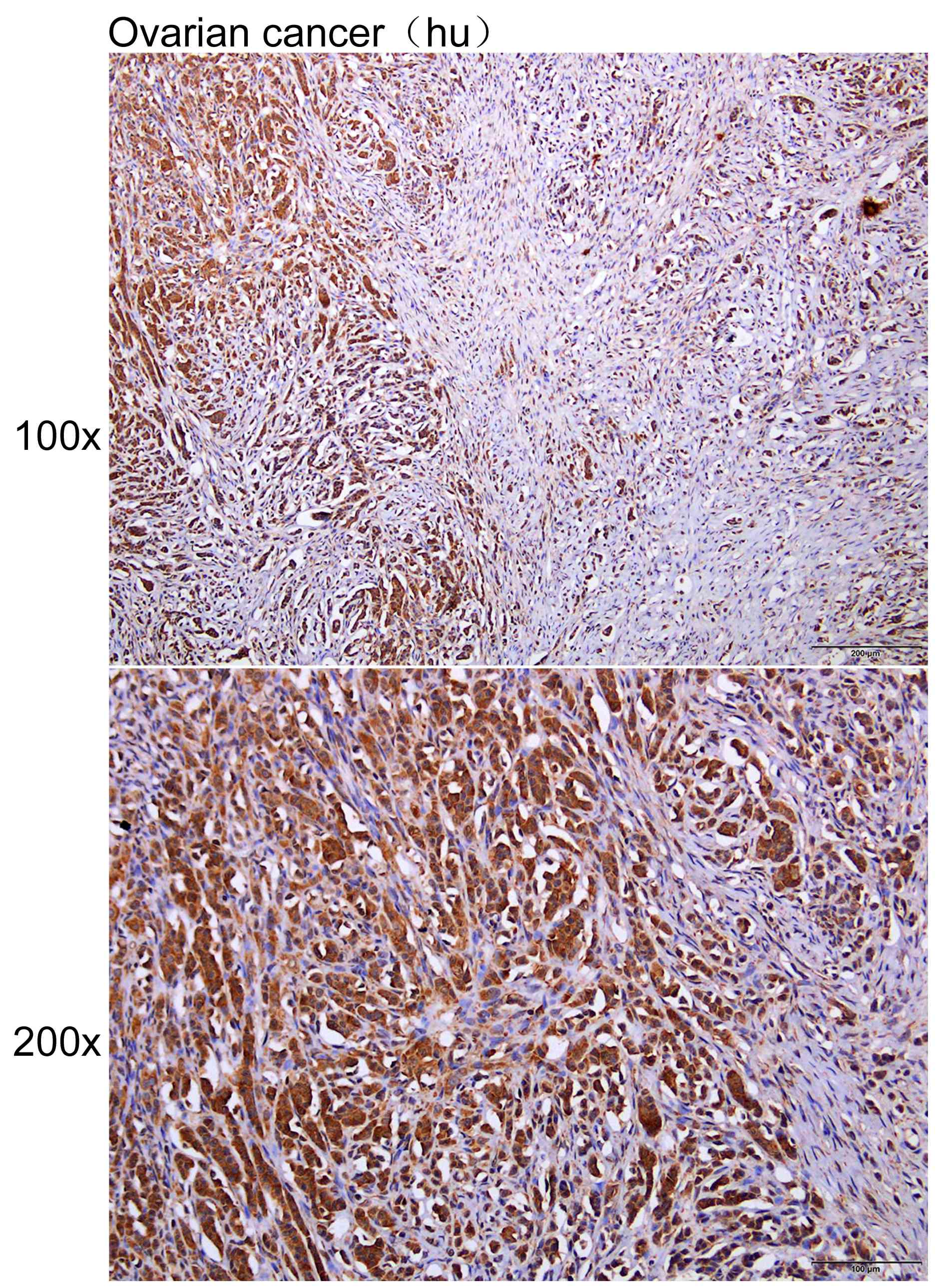 Immunohistochemistry of paraffin-embedded Human ovarian cancer with EIF2B4 antibody diluted at 1:200