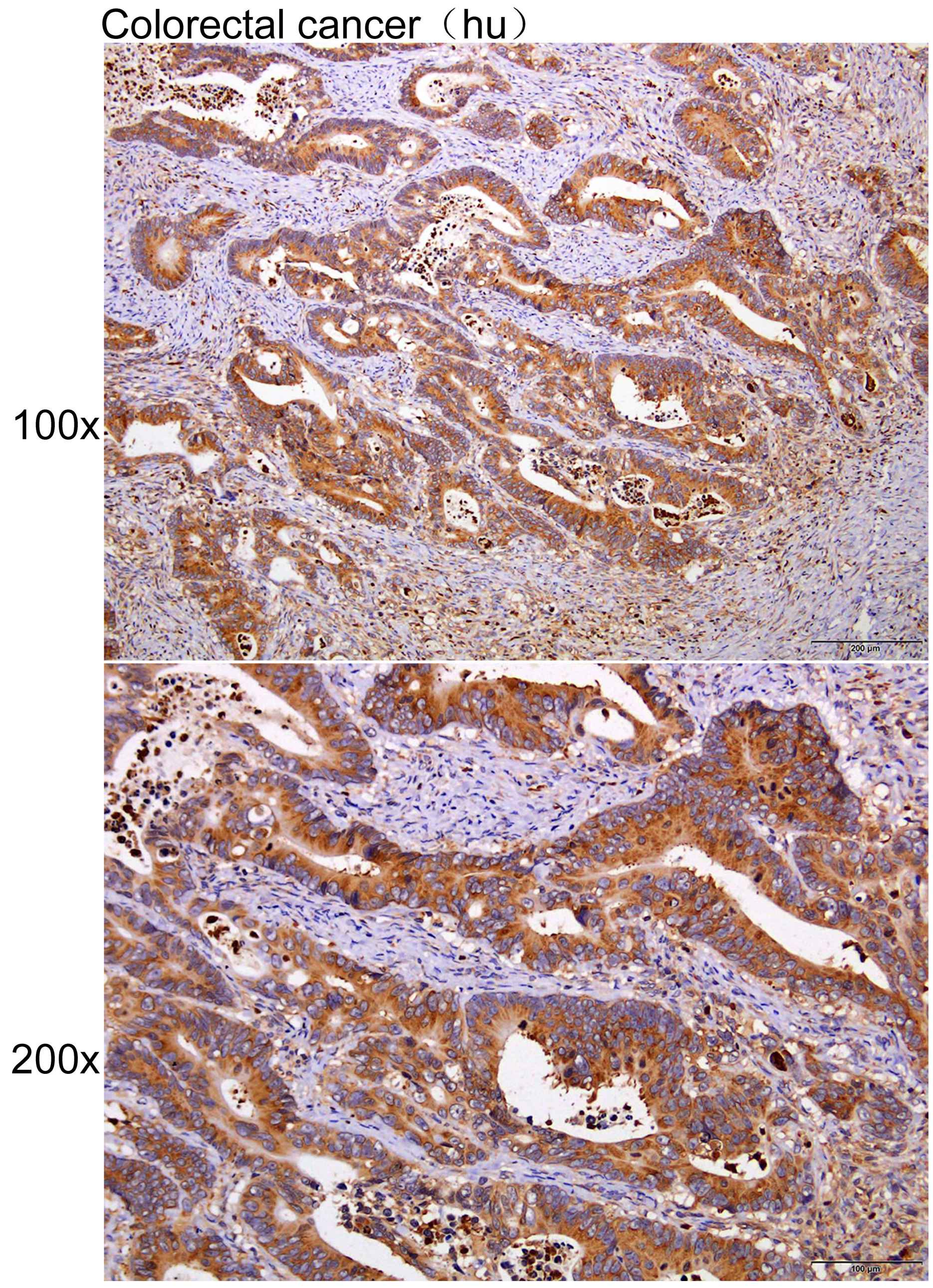 Immunohistochemistry of paraffin-embedded Human colorectal cancer with EIF2B4 antibody diluted at 1:200