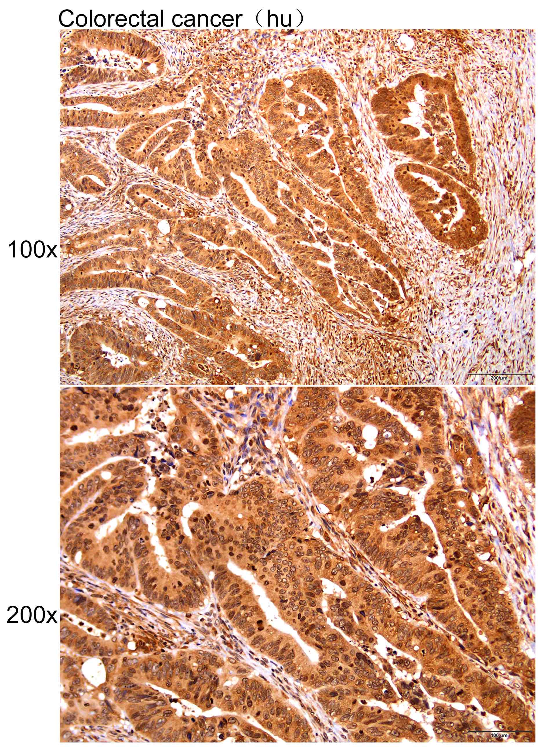 Immunohistochemistry of paraffin-embedded Human colorectal cancer with IFIT3 antibody diluted at 1:100