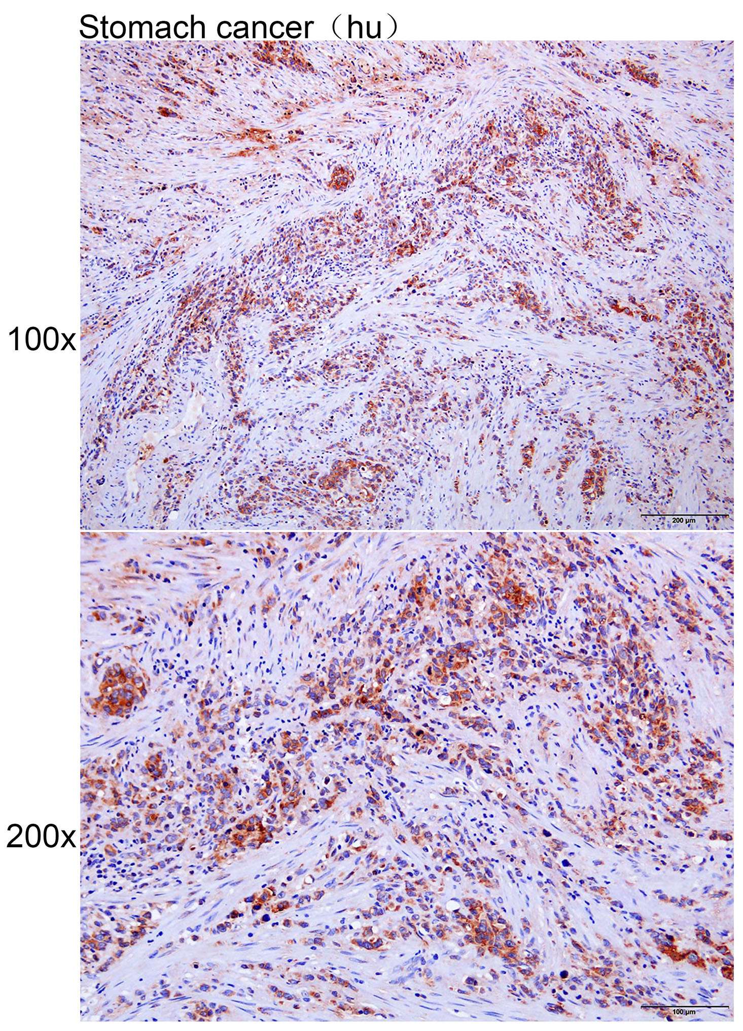 Immunohistochemistry of paraffin-embedded Human stomach cancer with GPR31 antibody diluted at 1:100