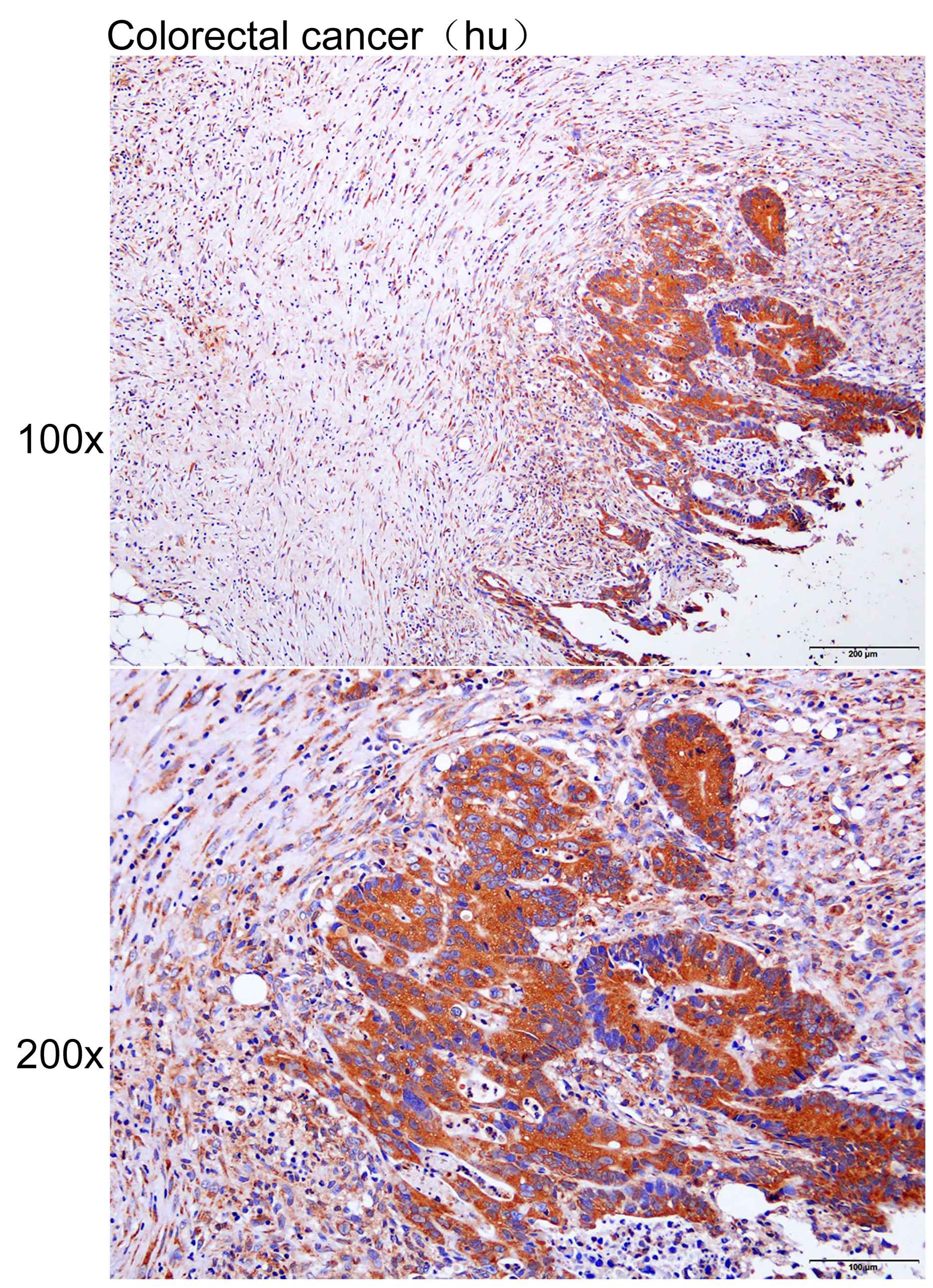 Immunohistochemistry of paraffin-embedded Human colorectal cancer with GPR31 antibody diluted at 1:100