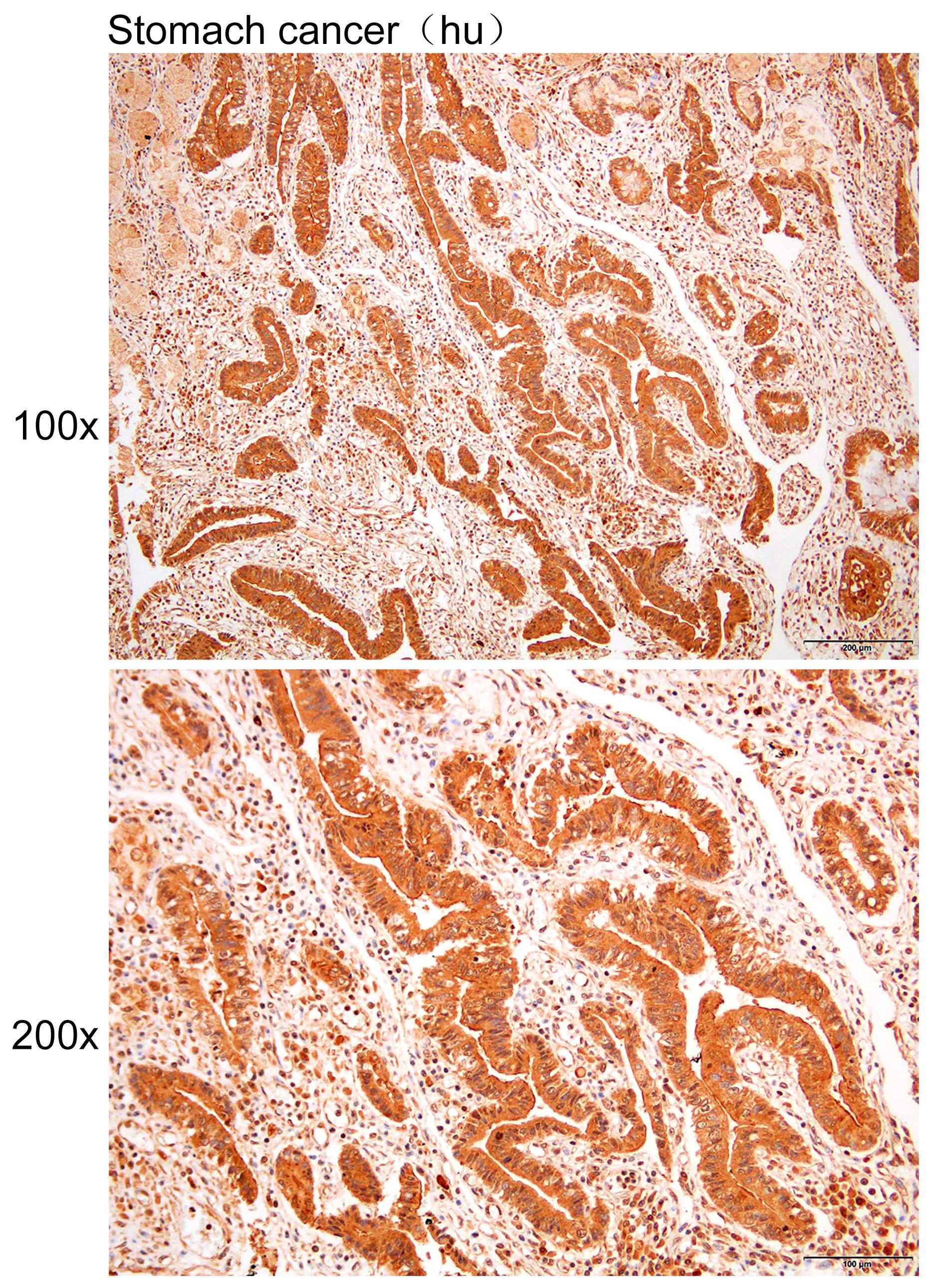 Immunohistochemistry of paraffin-embedded Human stomach cancer with MRPL50 antibody diluted at 1:100