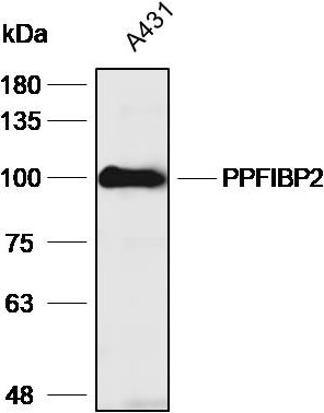 Western blot analysis with PPFIBP2 antibody diluted at 1:2000;Lane: A431