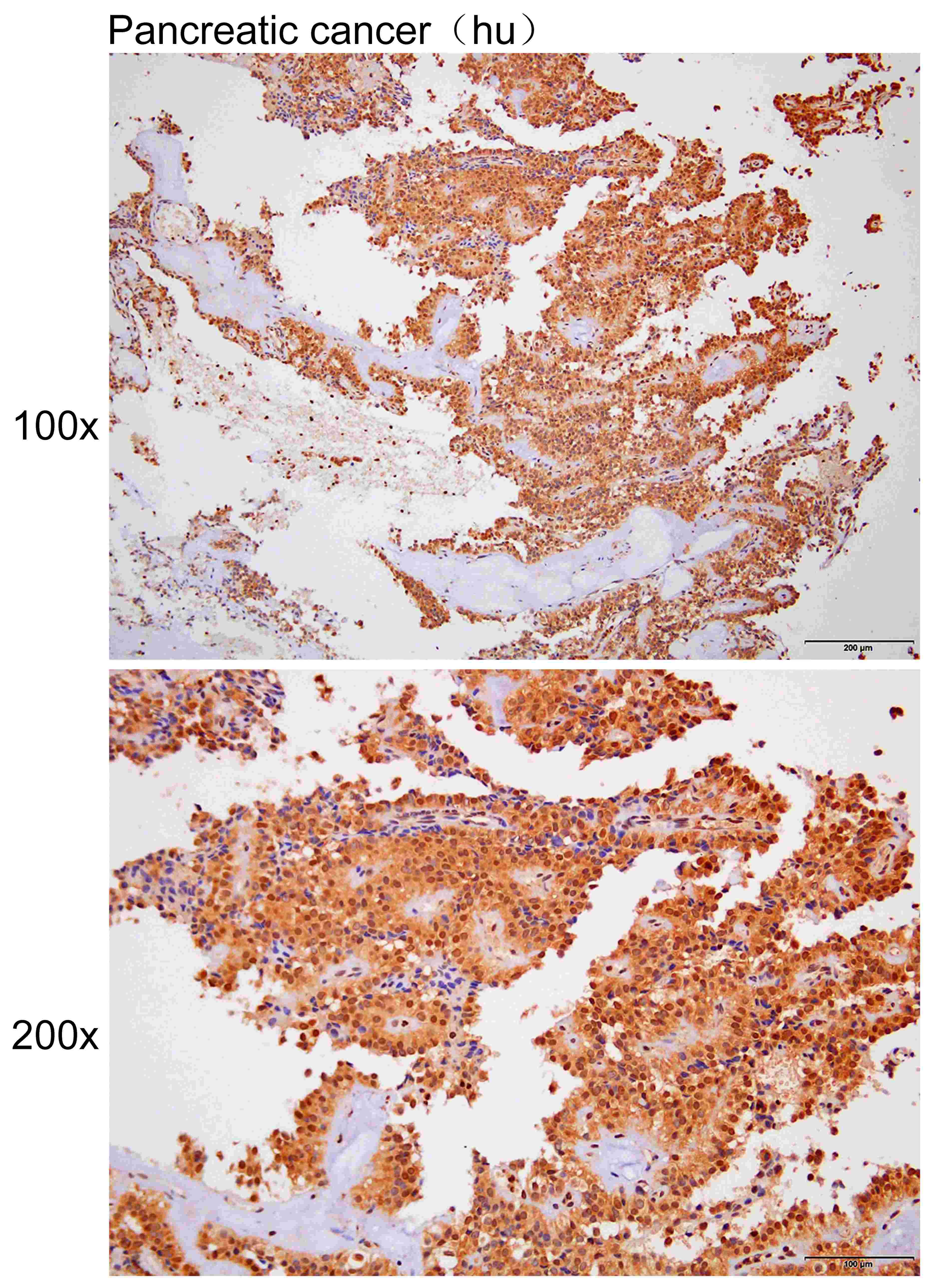 Immunohistochemistry of paraffin-embedded Human pancreatic cancer with TTLL1 antibody diluted at 1:100