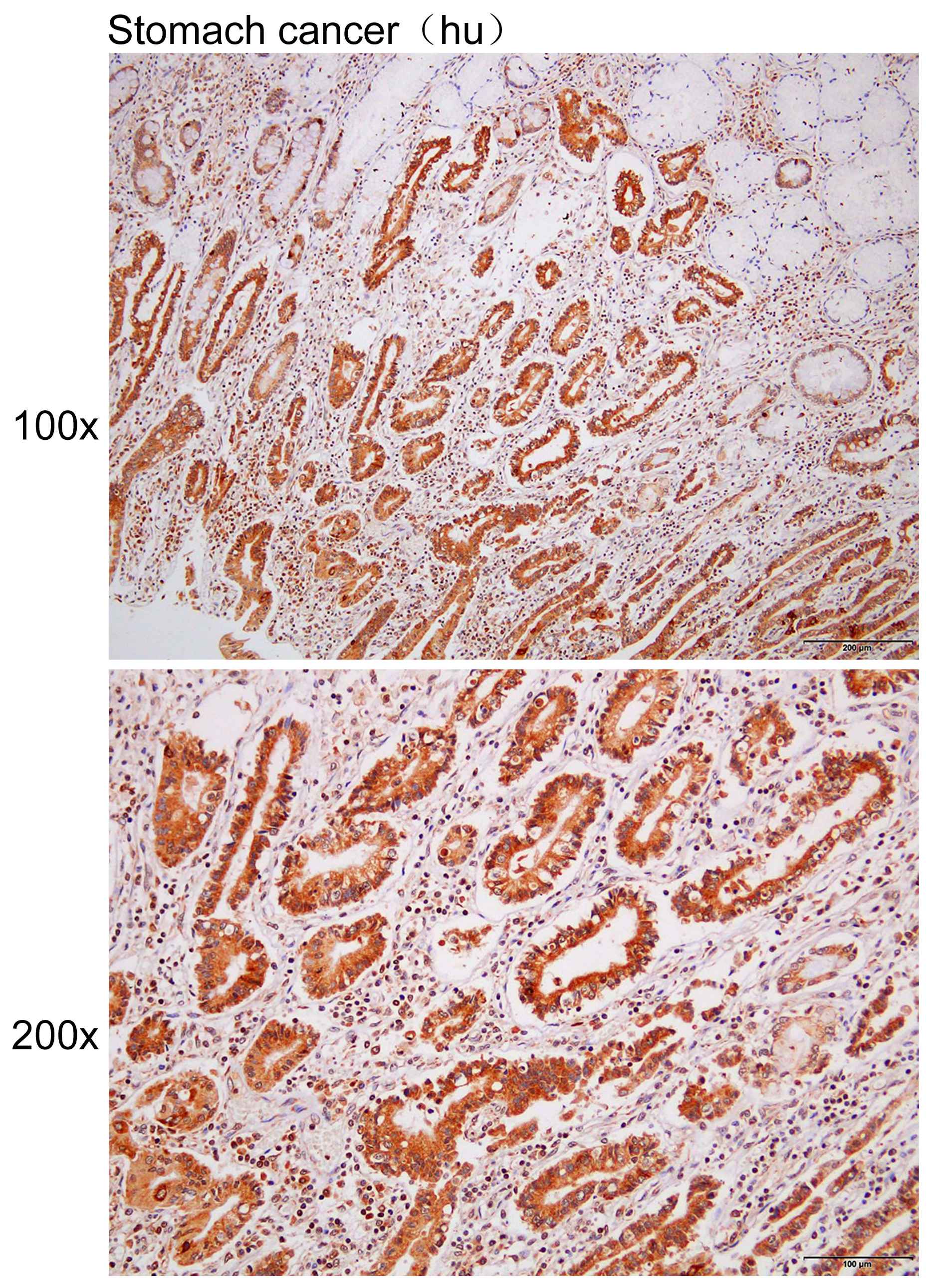 Immunohistochemistry of paraffin-embedded Human stomach cancer with TTLL1 antibody diluted at 1:100