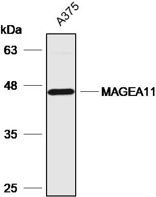 Western blot analysis with MAGEA11 antibody diluted at 1:2000;Lane: A375
