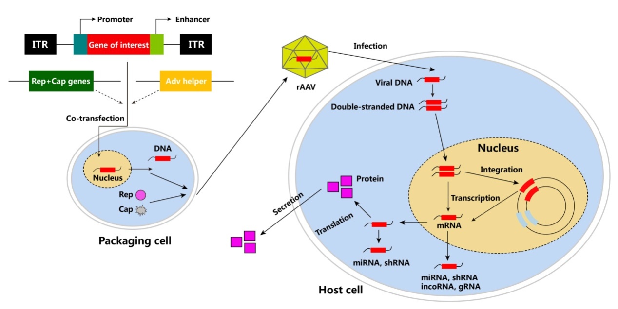 腺相关病毒(adeno-associated virus,AAV)是一类细小病毒,基因组为单链 DNA,对分裂细胞和非分裂细胞均具有感染能力。 在人类和小鼠中,AAV 感染可以介导外源...